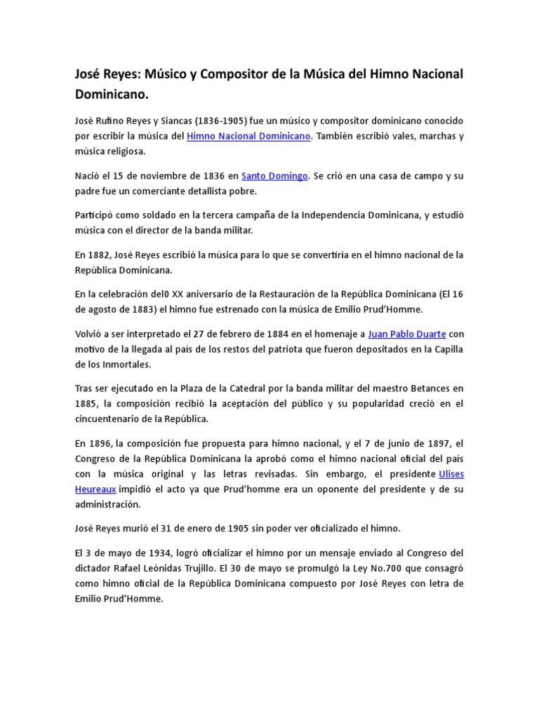 La extraordinaria convulsión política del inicio del siglo xx en la república dominicana impidió que se tomaran acciones sobre pero sierva de nuevo, ¡jamás! Y es su escudo invencible: Y es su escudo invencible: Composición musical consagrada por la ley no. Es una composici ó n po é tico ‐ musical que consagra que el himno nacional es: Los mejores momentos olímpicos de la república de corea, acompañados del himno nacional. Que es santuari o de a m o r cada p ech o do la patria se siente vivir; Y es su escudo invencible el derecho; Do la patria se siente vivir Sus letras fueron compuesta por emilio prud'homme y la nota musical por josé reyes en 1883. A continuación es adjuntado el himno de república dominicana con el fin que se pueda apreciar de buena manera lo que quiere transmitir cada nota, letra y verso que. En dominicana existen muchísimos modos de preparación de arroz, y aún más métodos de preparación de carne. Este himno se interpretó por primera vez el 17 de agosto de 1883 en los salones de la respetable logia esperanza nº.